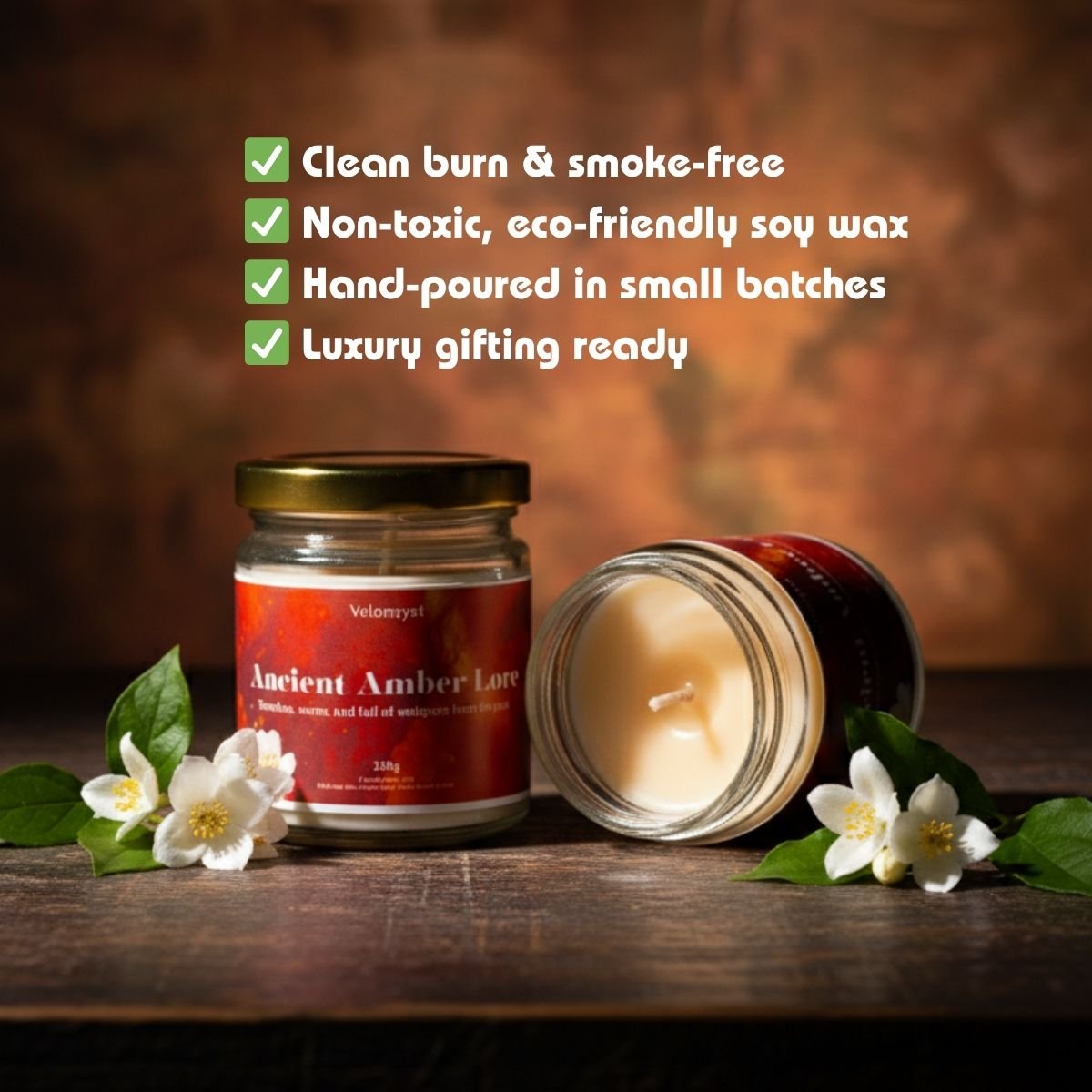 Discover the enchanting warmth of Ancient Amber Lore — a candle that whispers stories of ancient temples, golden dusk skies, and timeless serenity.