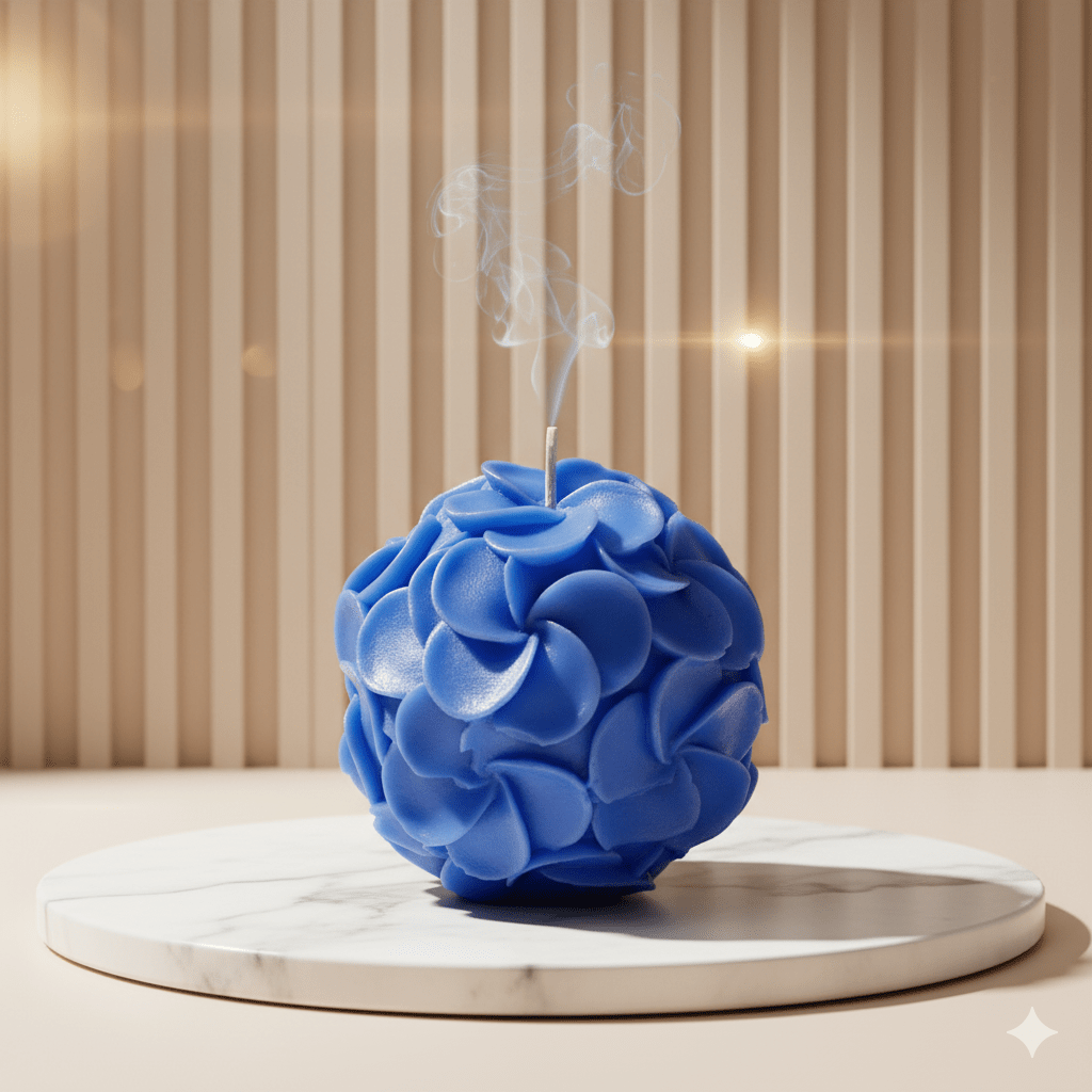 Bring a touch of elegance to your home with the Blue Petal Sphere Candle – a 90g handcrafted piece that mimics the beauty of soft petals in a serene ocean-blue shade. Infused with Aqua, this candle releases a clean, refreshing aroma that feels like a walk by the sea.