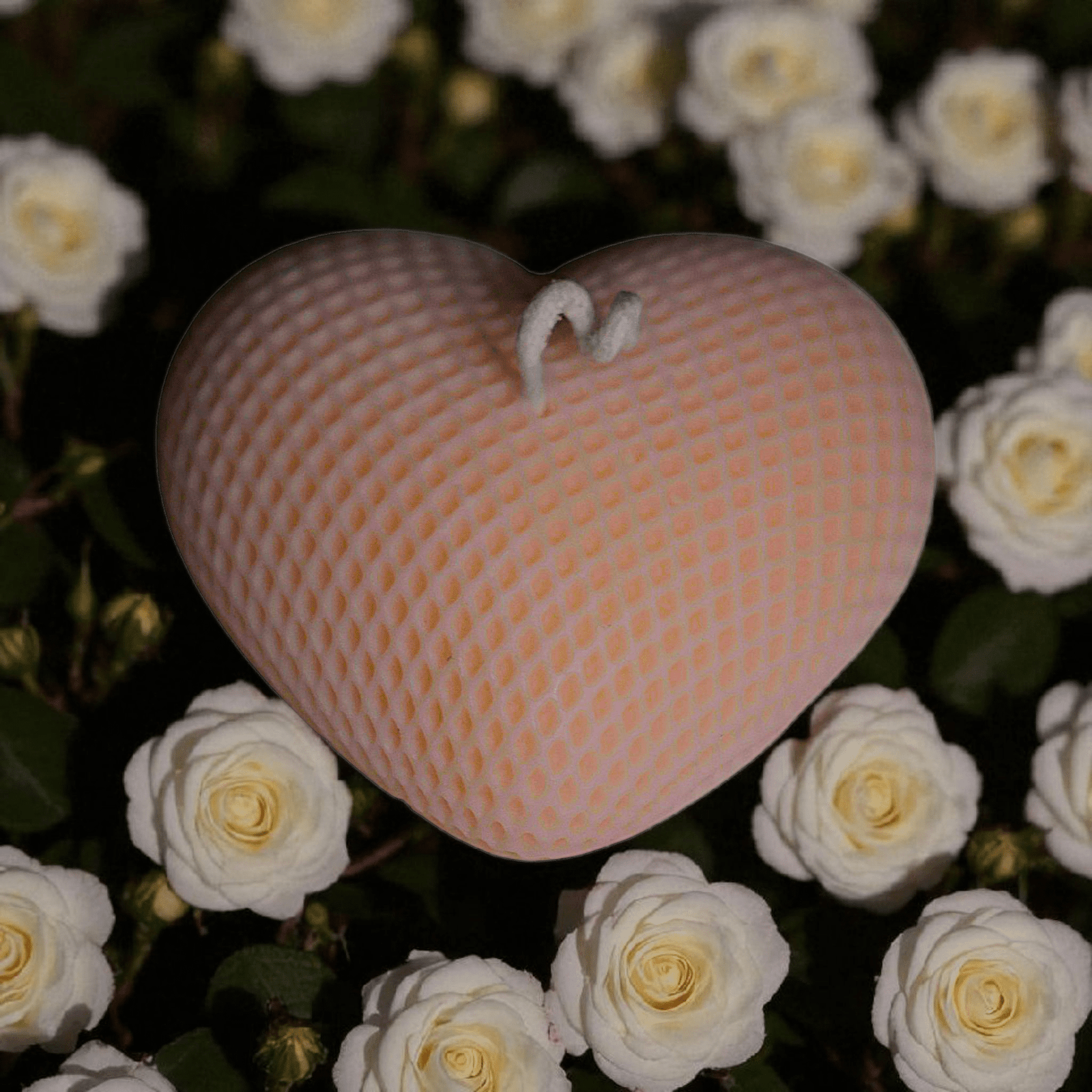 Bring warmth and romance into your space with the Blush Heart Candle. Crafted from premium soy blend wax and finished in a soft blush hue, this 70g candle fills the air with the gentle and elegant aroma of fresh roses. Its intricate honeycomb pattern makes it as beautiful unlit as it is when glowing.