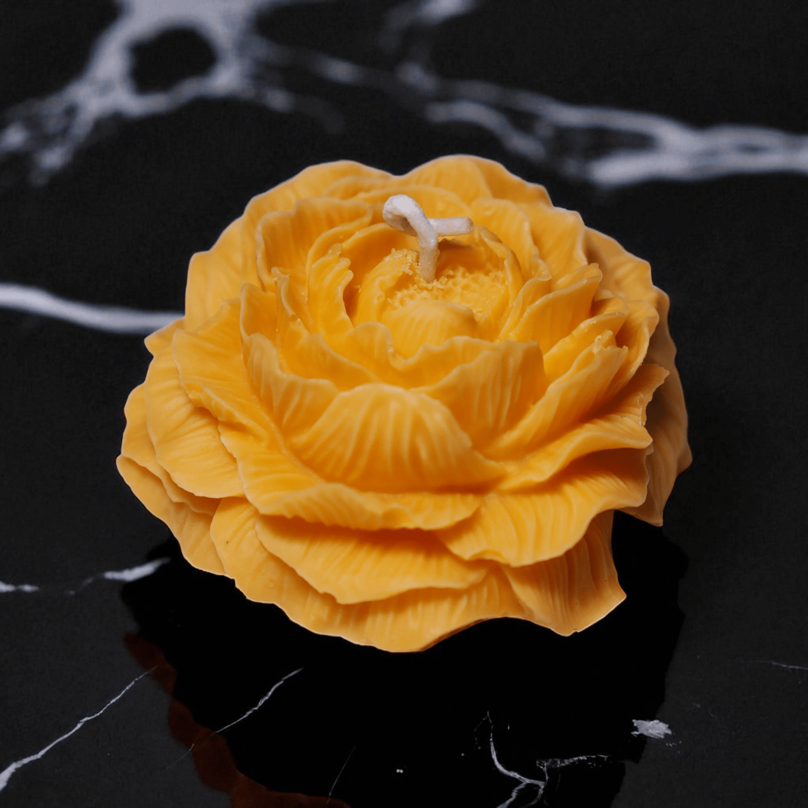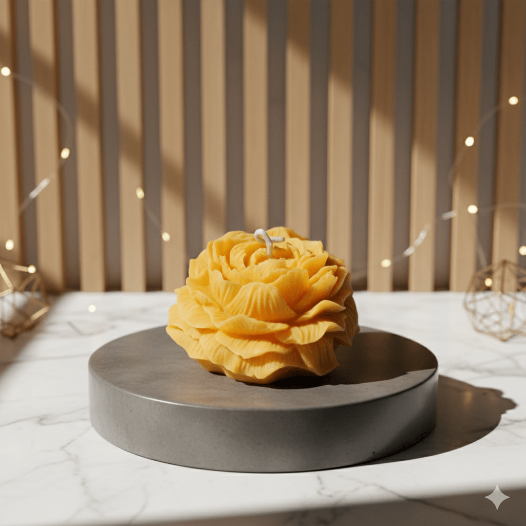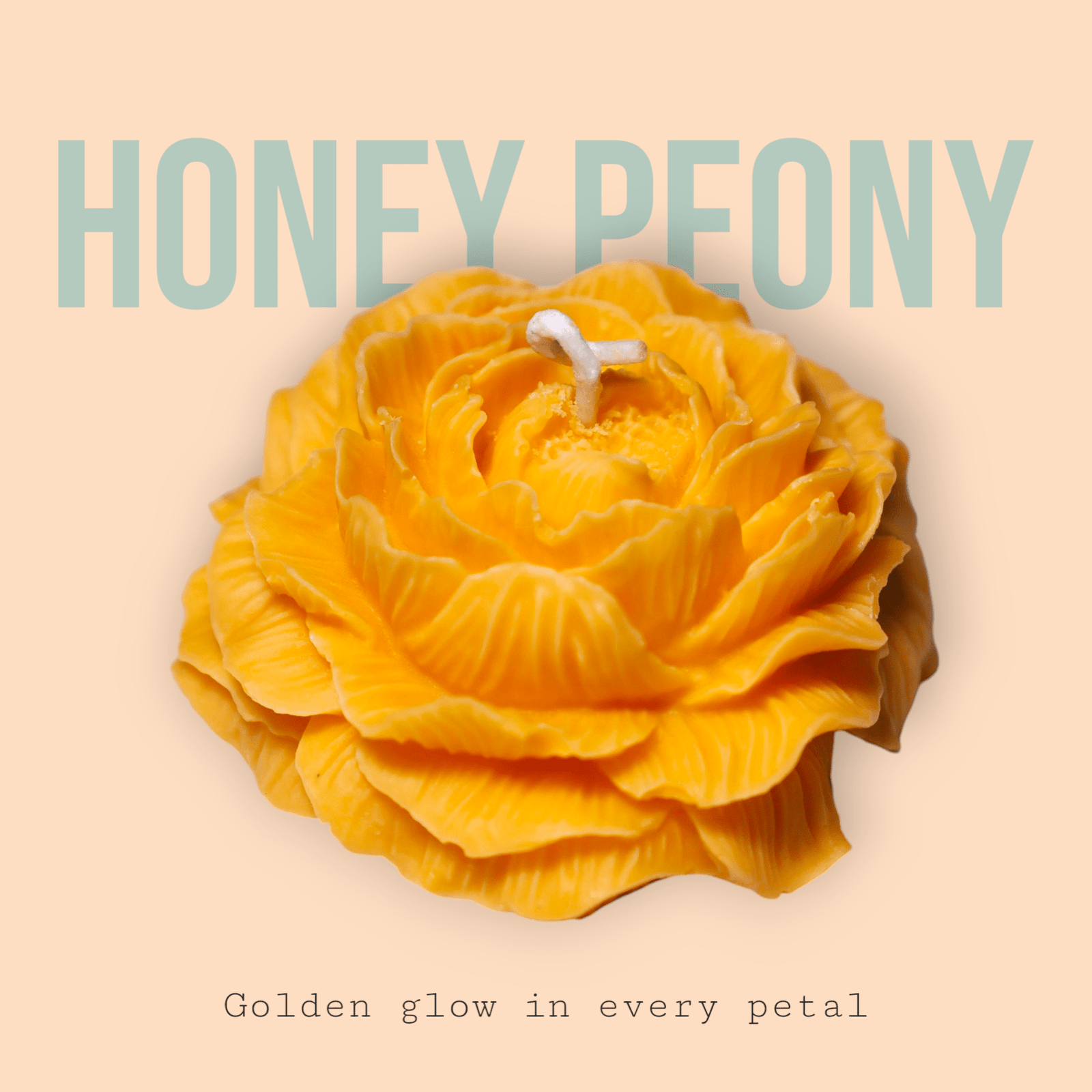 Introducing the Honey Peony – a handcrafted, sculptural candle shaped like a blooming peony, bathed in warm golden hues. Each petal is meticulously carved and infused with the deep, mysterious fragrance.