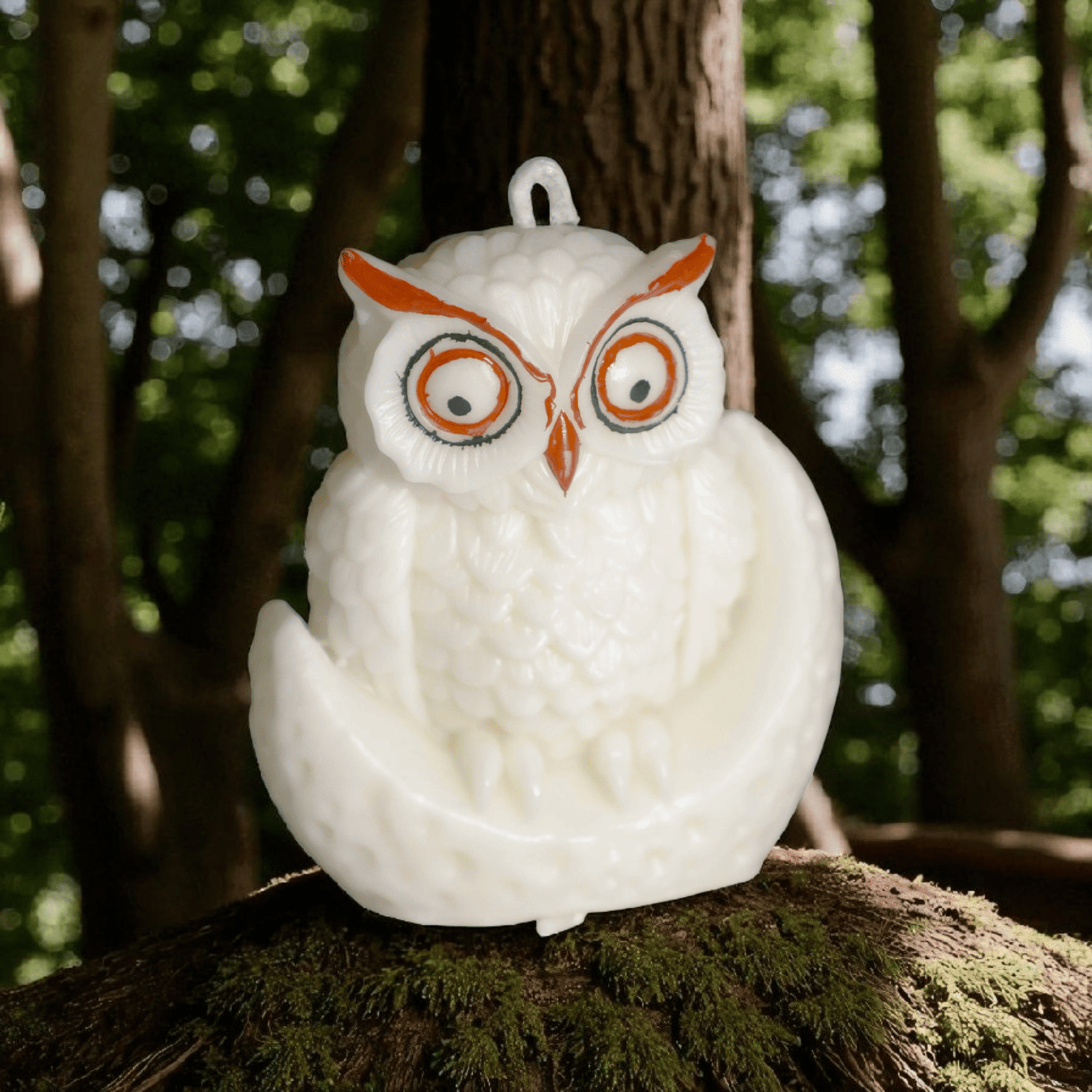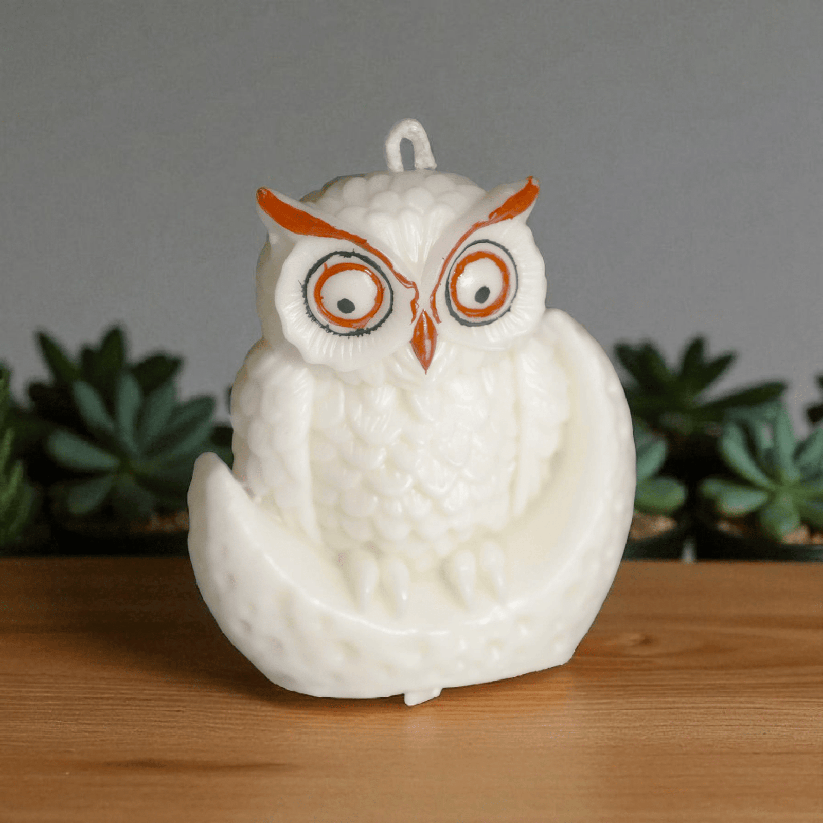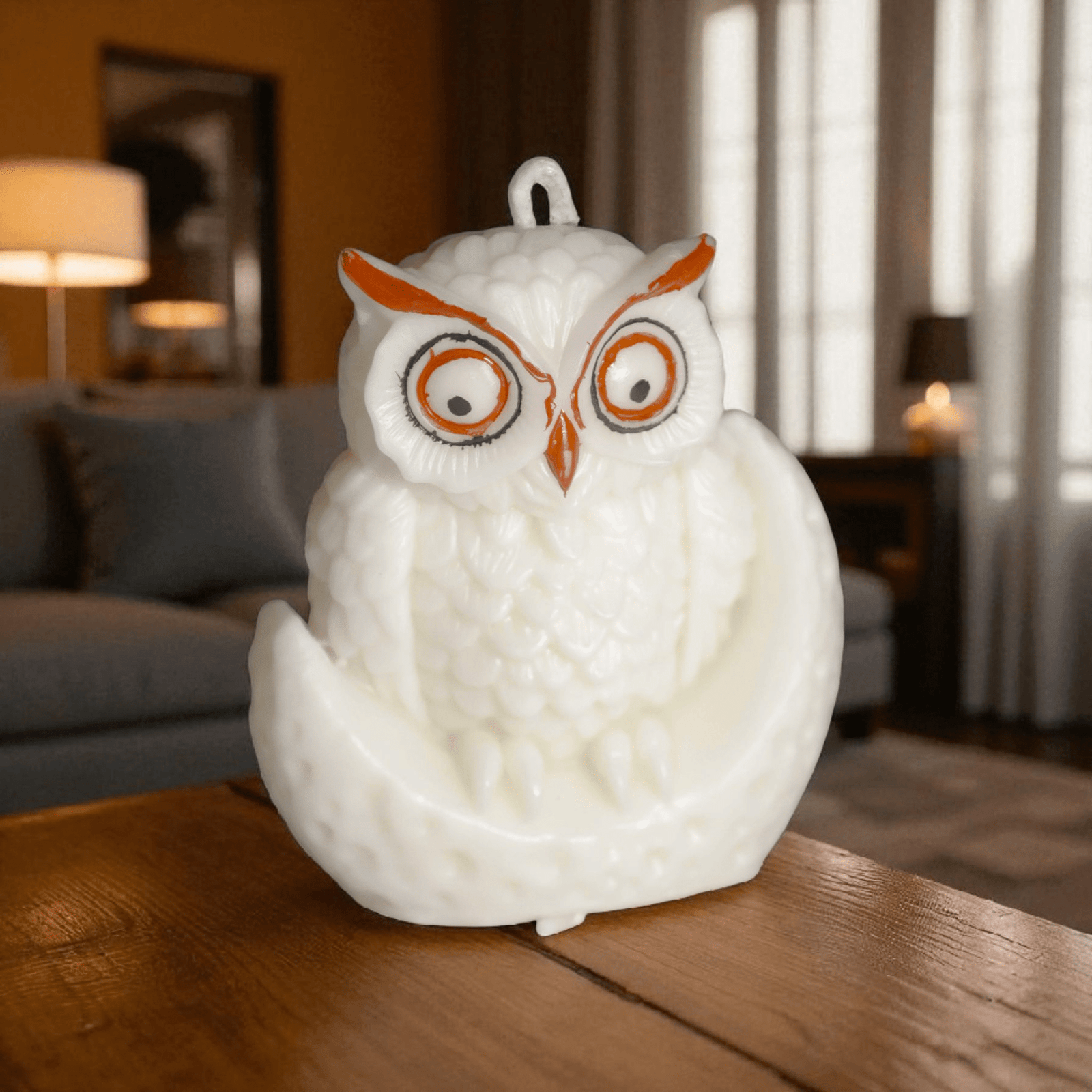 Bring the mystery of the forest to your home with the Owl Moon Candle – a detailed sculpture of an alert white owl perched on a crescent moon. Crafted from a premium soy wax blend and infused with Sandalwood Forest, this 150g candle creates a peaceful, grounding ambiance with every burn.