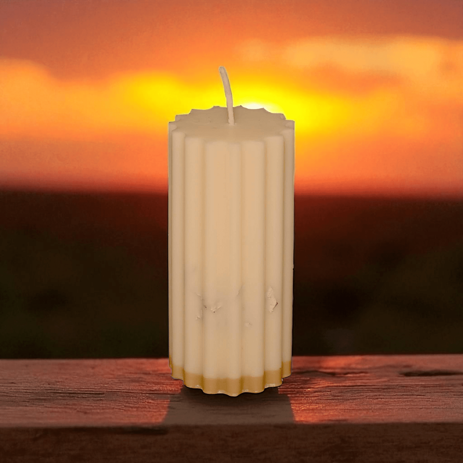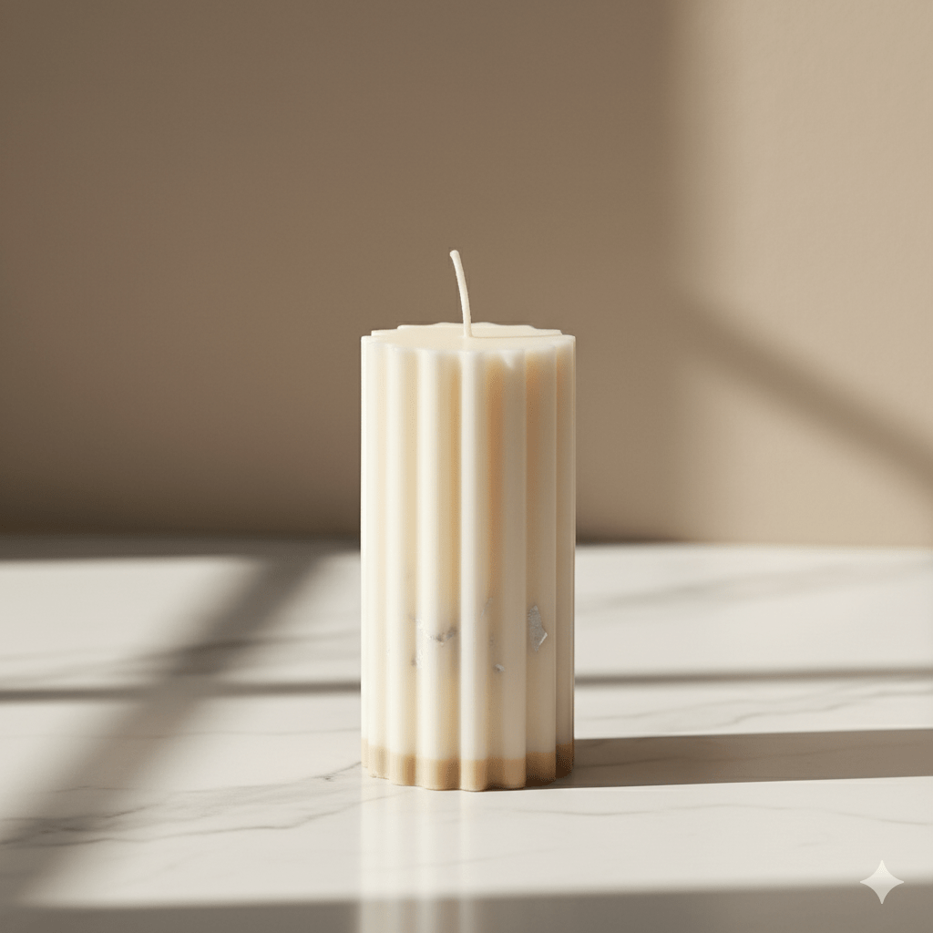 The Velomyyst Aurelia Sandalwood Fluted Pillar Candle blends timeless style with luxurious fragrance. Hand-poured into a refined vertical-flute design, this candle is perfect for adding a touch of class to living rooms, dining setups, or spa spaces.