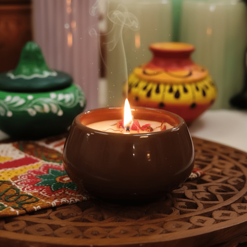 Elegant terracotta-inspired luxury candle pot